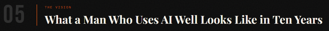 Imagine a 25-year-old who decides today that he will use AI as a forge, not a comfort. He uses it to design a serious training program — he gets strong, joins a powerlifting club, makes friends who respect effort. He uses it to accelerate a side business — he builds something real, finds partners, earns trust in a network of builders. He uses it to read more deeply, argue more clearly, and think more rigorously — he becomes the man other men want to debate and drink with. He uses it to plan expeditions — he spends weekends in the wilderness, accumulates stories worth telling, earns the respect of men who have tested themselves against nature.